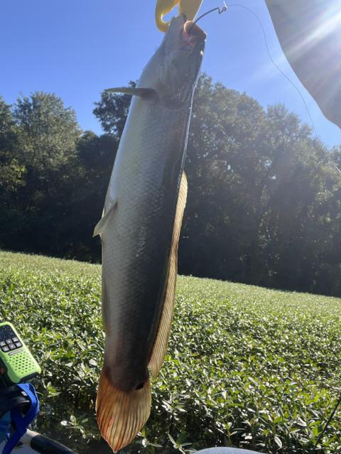 My first bowfin! ………. so in shock that we forgot to measure & weigh it ……… but it was heavier than I expected and was solid ………. awesome fish!