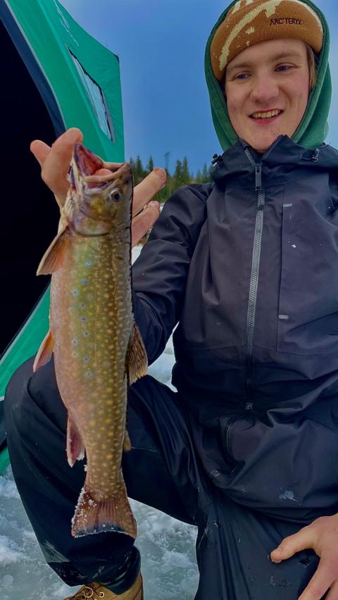 My first hardwater session of the season! A very successful outing with my friend Lukas and I both limiting out at 5 trout. Caught on my new Berkley Cherrywood Ice rod/reel. Yellow glow jig tipped with Krill or worms both did the trick. Fishing about 6 feet of water and could see all the Brookies below the ice.