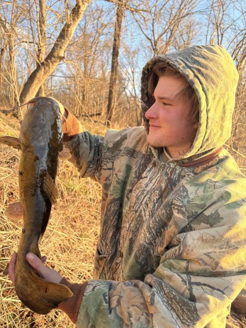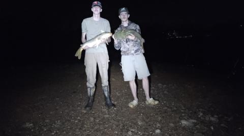 My buddy Theo and I got out first double up, I got a nice little flathead and he caught a beautiful 12 pound common carp.