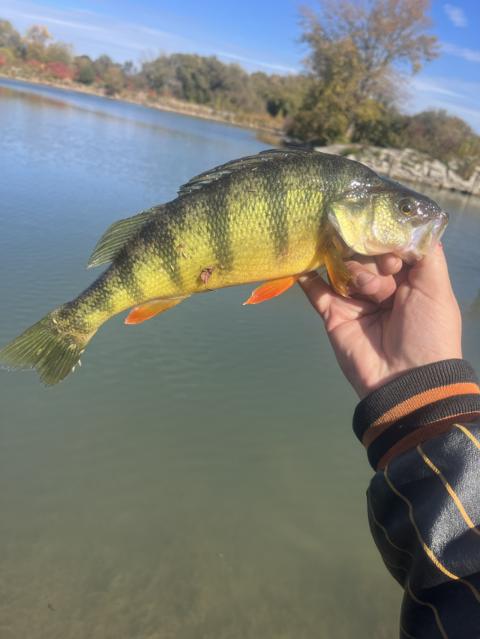 This has gotta be the biggest perch I’ve ever caught lmao he slammed the Mepps Black fury number 4😂