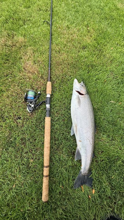 NEW PB!!!! This guy fought like crazy the whole fight was probably around 3 mins. It was peeling drag! The salmon weighed 11.38 pounds and 31 inches. There was these other people fishing and they were non-stop pulling in salmon