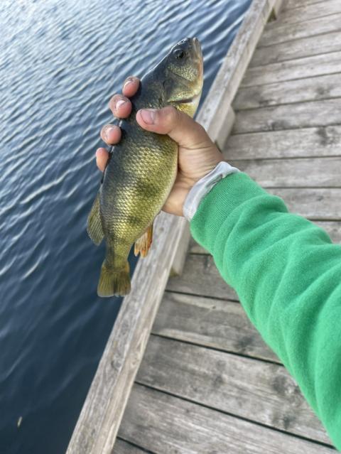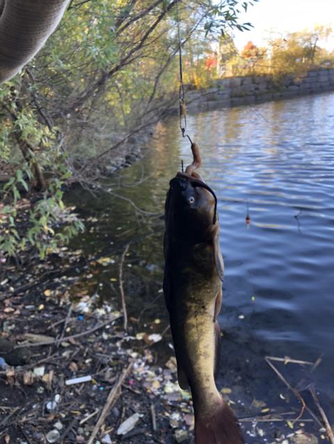 I was just reeling my line in and suddenly this nice bullhead swallowed the worm, my first bullhead too!