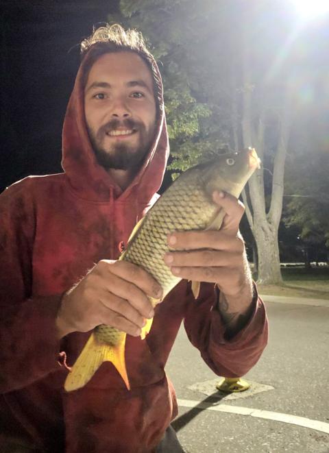 My first carp! Dont mind my crazy eyes haha it was quite the battle for a few mins there