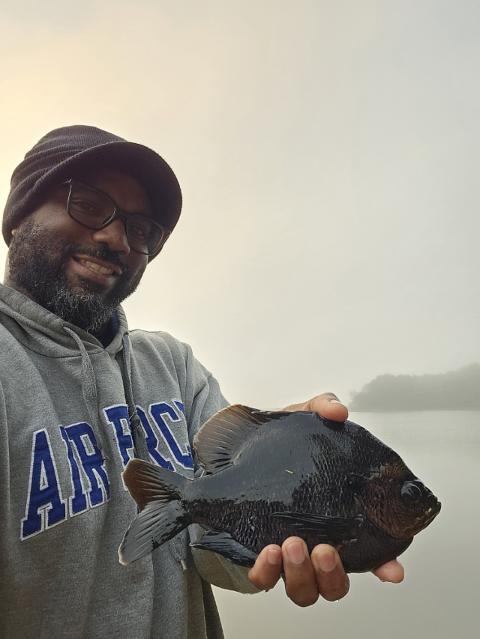 Working in this HOA neighborhood with a pond that is for residents and guests only. Secured permission and during a break caught this lovely bass probably just shy of 1 lb. Makes workin' a whole lot more interesting. Thank you for your service fish.