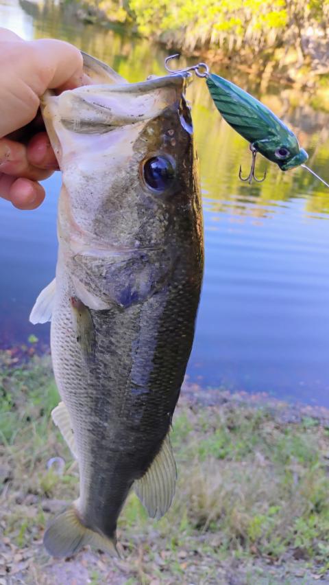 I'm so flippin excited!!! Caught this 16" beauty weighing almost 2 lbs using my newest lure that I hand painted.....topwater popper that I named The Green Manalishi..... First bass and fish I ever caught using my own hand painted lure!!!! A shout out to Deco Art Americana paint that I bought at Michael's, color is called Hauser Dark Green! Time to celebrate🎊🎊🎉🎊🎉🎊🎈🎈🎈