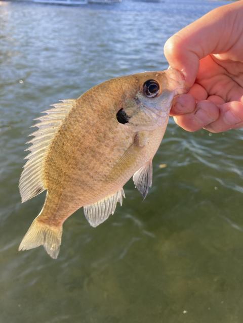 Caught a tiny bluegill last night, threw him back-he’s way too small to eat.