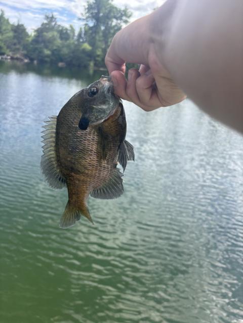 Was recycling my computers and found this small lake with lots of residences. It said private but the lake is so close to road. I checked city andvthey said right of way 7' in from curb so I went 6'11" and threw from there. Caught 3 panfish and a bass in 15 min Fun Plus my new cadence elate reel!!!!