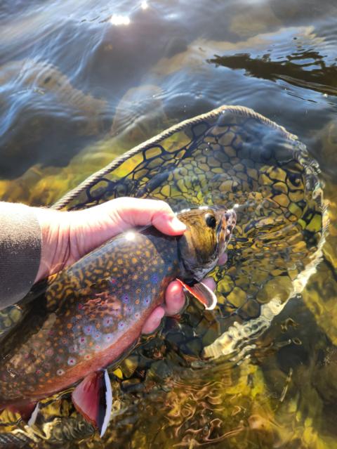 Today was an amazing day of fishing. I landed 4 brook trout between 12-16". I've been planning this trip to the Rangeley Region for more than a year now, and finally I was able to make it here. My original purpose of the trip was to try and catch arctic char. According to Maines website, there are vhat in Long Pond. However, I called up the local tackle shop last week to tey and get some info on how to target them, and they told me that many people have asked about the char but they've never heard of someone catching one. Hopefully I will be able to head further north next year to try and catch one This is not an easy spot to get to. There's about 20 miles of dirt logging trails before there is a gate and you have to walk the rest of the two miles. I made it to the gate just before sunrise and luckily was able to walk in with someone else who got there at the same time. He was telling me that the last time he was on this trail, a bull moose wandered out of the woods and started chasing him. Luckily he was on a bike. However, we were walking to the river on foot today. We were the first people on the river, which meant we got the first hole. I was using my euro rod to nymph the run and caught the first 2 broom trout of the day. After an hour, more and more people started to come, so I moved on as proper etiquette. The rest of the holes were not producing fish for me. It wasn't until noon when I got the 3rd brookie. I moving spots and just had my flies in the water when he snatched it. The first 3/4 fish all came on a 14 pheasant tail with an orange ice dub collar. The final run that ran into pond in the river was very good to me. I lost 2 fish, moved a 3rd, before finally hooking the 4th. All of them were from swinging a black streamer. The walk back to the car was sketchy. A 30 minute walk alone in the woods, just waiting for a 1500lb bull moose during rut to come rushing through the trees. Even though it was an amazing day of fishing, I am not going to be doing that walk again.