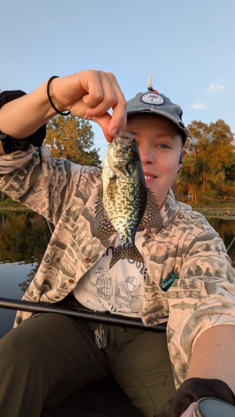 I caught a handful of bluegill and a little bass, and then this little guy bit my spinner with a grub! As I was walking my kayak out of the water, an old couple sitting on a bench was looking at me and the lady said something to me that I didn't understand. It wasn't English, so I asked her what language, and she said Russian. Her English wasn't great, but she pointed at me and said "devushka" then "na" then she pointed at my kayak, "lodke." And I repeated it, wondering at the meaning and then she said "girl on boat." And I was like "devushka na lodke!" Look at me, learning Russian on the fly.