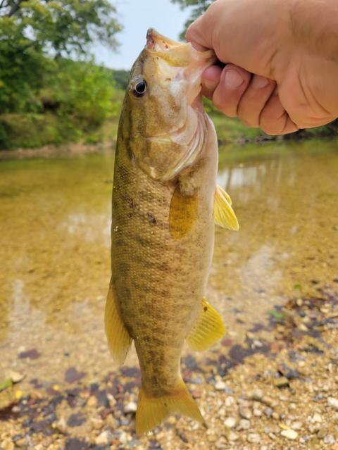 Took a lunch break today while in Forsyth. Went to Bull Creek. Got these 2 smallmouth back to back in a small hole not even 2' deep. Second one hit just as my choppo landed in the water. Both about 14-15", less than 2lb but fought hard. Surprising catches!