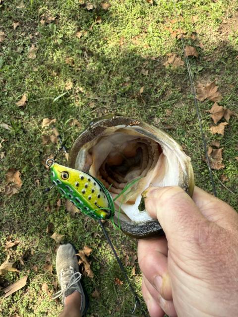 Top-water magic. . .one and done. I was able to squeeze an hour in to fish and caught this 3.5 lb @ 20 inches. Top-water frog!🎣👍