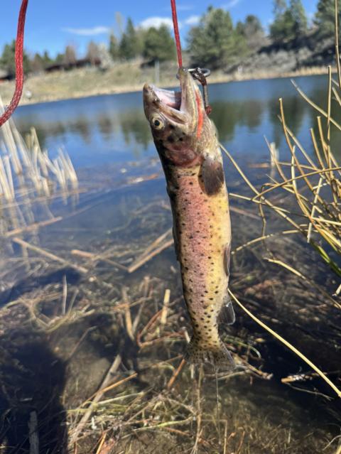 Almost needed a bigger rod for this one. The app thinks it's a cutbow and I really have a hard time telling. Sorry no true measurements. Was running out of daylight and there were more fish after this😁