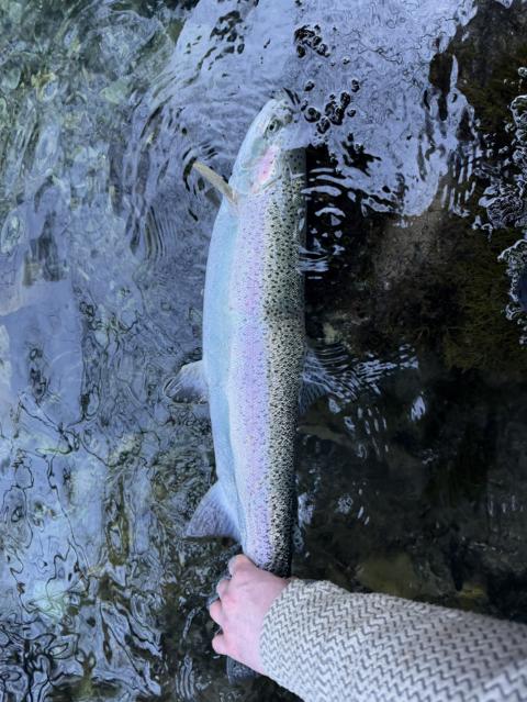 A blue crystal clear hike in the lake awaited with big and bountiful wild rainbow with a fix for taking big bugs on the fly.