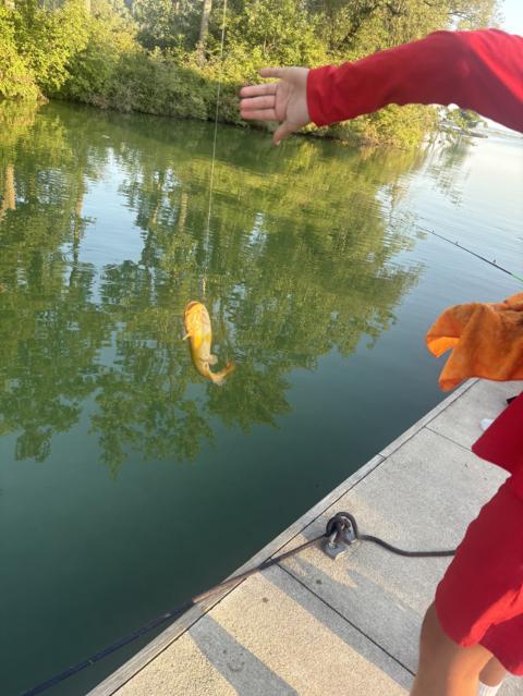 nice day on the lake caught a small cat fish on a button rod
