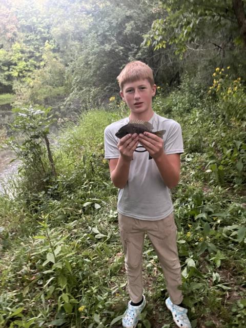 I just caught this bass in my creek and he gave me a run for my money