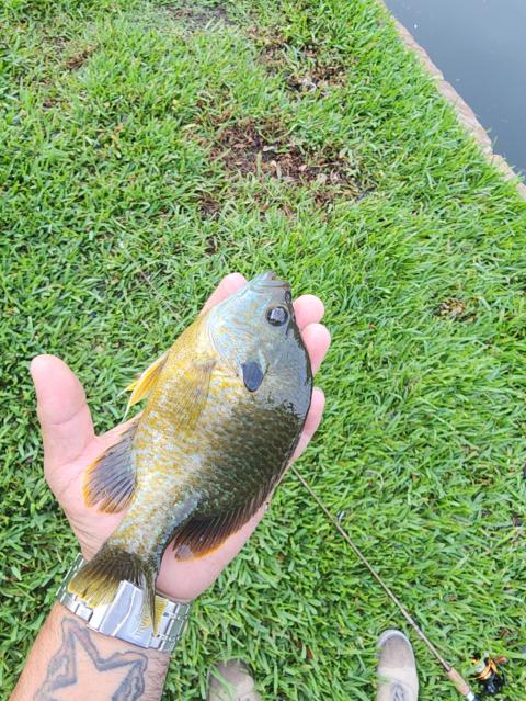 The only bite that morning. None before and none after. My PB and I had a gentleman sitting on a park bench cheer me on when I land it. He had never seen anyone catch a fish at this lake.