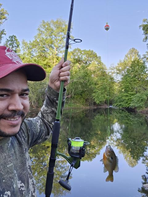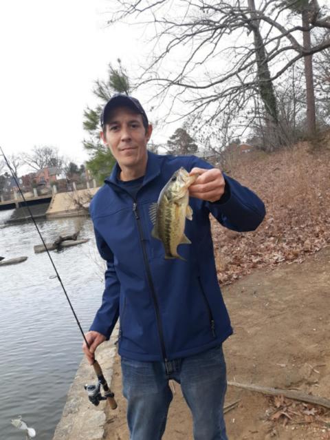 72 degrees in va today, had to get a line wet, so took my little niece out because she wants to learn how to fish, which I think is really cool. small bass on a crankbait.