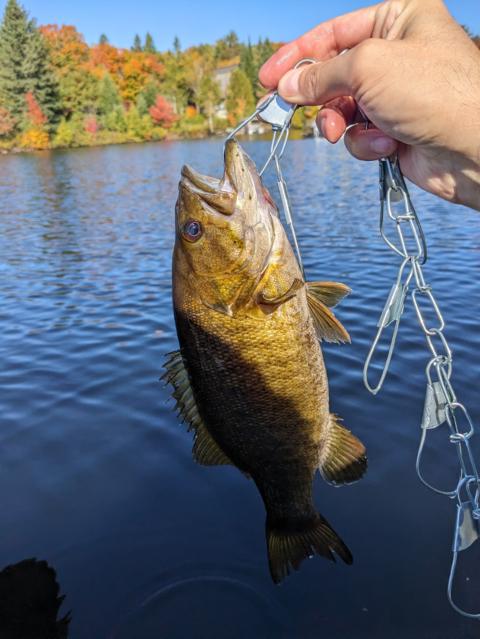 Cet achigan s'est détaché de lui-même et est tombé directement sur ma pagaie! Une drôle de remise à l'eau... 🐟💧