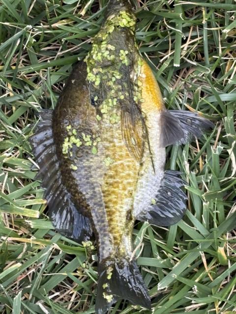 Caught a bass as I was reeling my lure back up from the moss! 😂