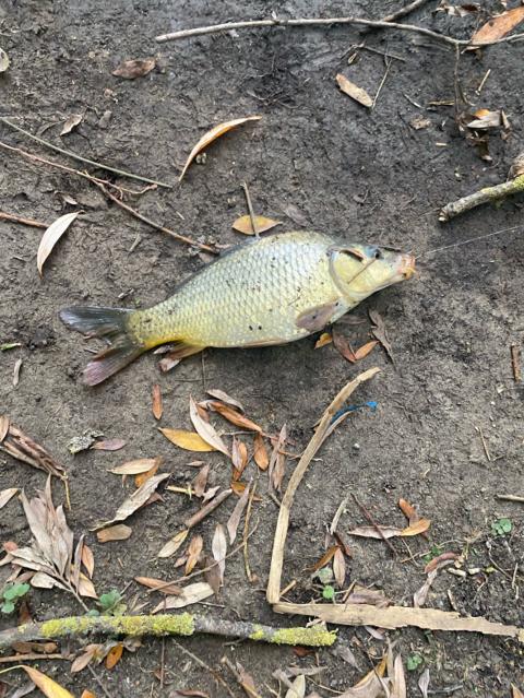 A hard fighting carp on a free lined chunk Of bread.