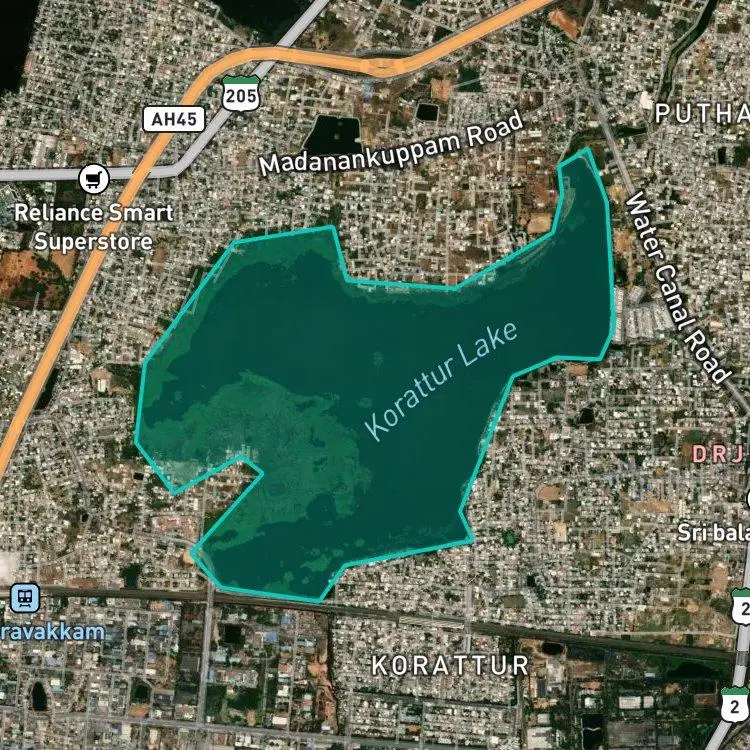 Korattur Lake is located in Thiruvallur, Tamil Nadu.