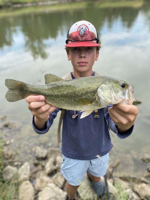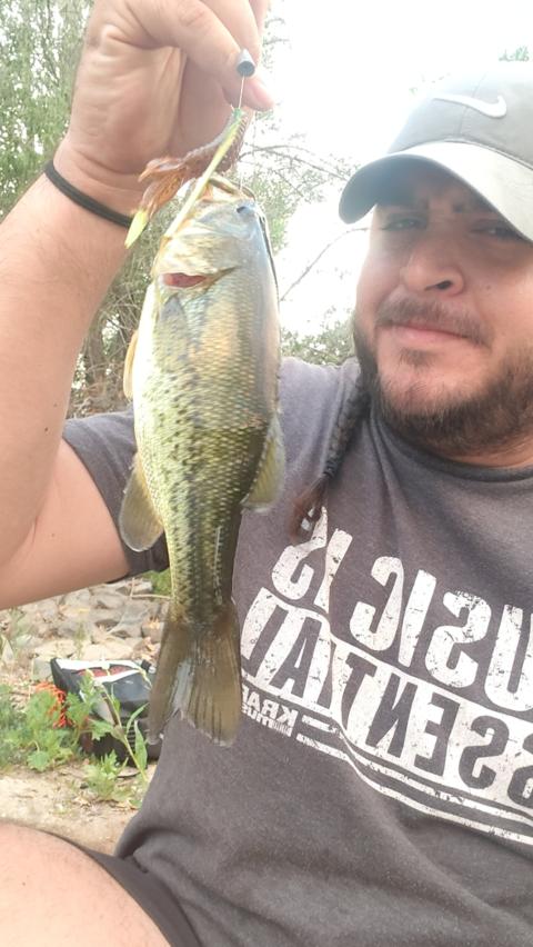 Caught this big one fishing with my buddy we caught about 20 bass today but this was the best picture so I had to post it.