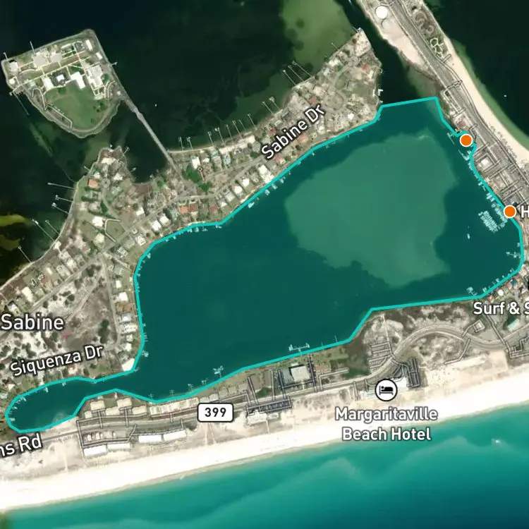 Download FishAngler to find the best places to fish at Little Sabine Bay.