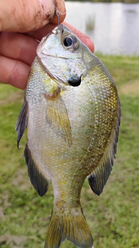 Just caught two little bluegills ... Gonna release in the pond where I live!! So far, one nice bass, a nice tilapia and two BGs 😁😁😁🐟🐟🐟🐟