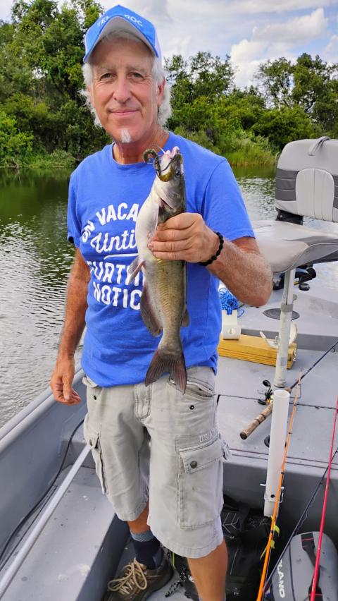 Caught a nice 18" 2 lb catfish using Berkeley 7" Powerbait...Camo color 😼😼 6 caught so far..... Heading in soon