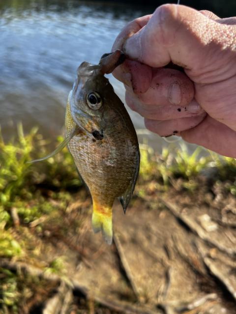 Smallest fish I think I have ever caught lol. Of course sent him back cute@little guy