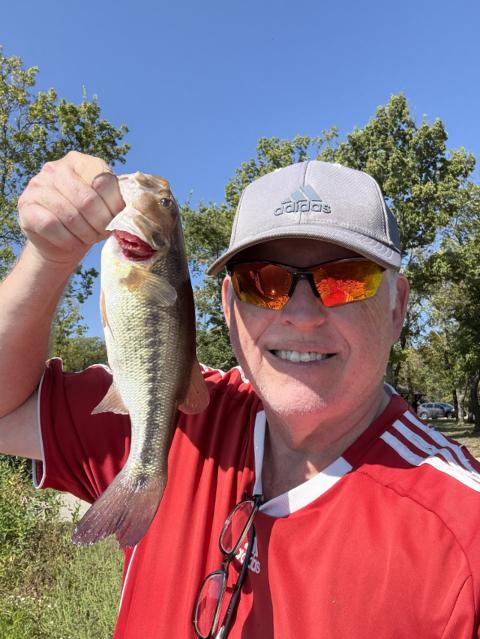 I spent the day at Lake Crawford in Kansas. Tough place to fish, but caught a Spotted bass and two LMB. 🚫🦨 today! 🎣👍