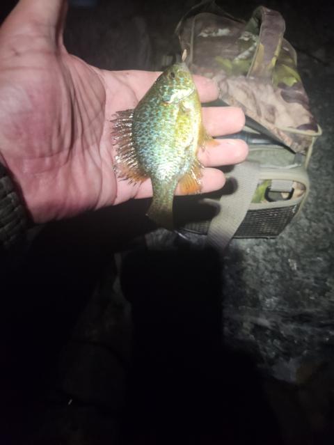 A few sunfish and Lil bass in the shallow water were pretty sluggish. So I went out to where it starts to drop off had a few bites and then managed 1 Lil skunk beating smallie b catch.