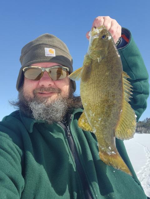 After breaking my ice line on it's second strike this pig of a smallie b finally made it to the ice on it's 3rd strike