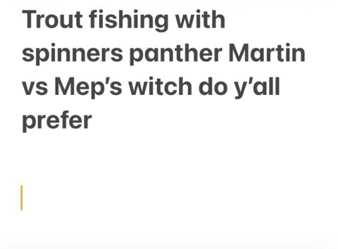 For trout fishing panther Martin vs mepp’s which do you prefer and if it’s a different brand tell what brand it is