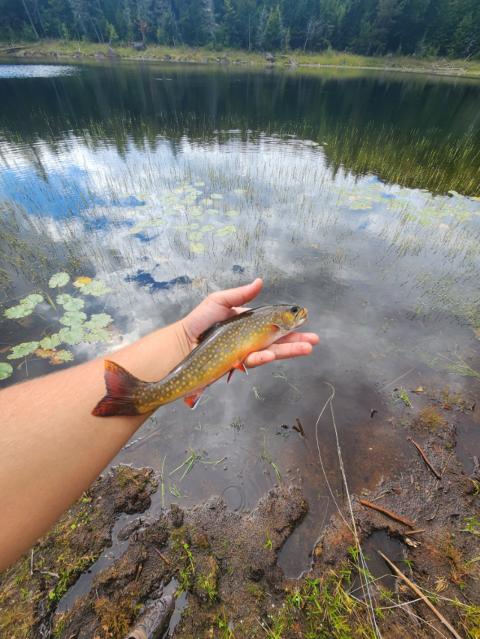Headed back to Giant's Wahsbowl today. The day started off pretty bad. My 5:30 alarm didnt go off, and I woke up at 9:30 instead. I then decided to take the ferry across which Google maps said would take 20 minutes off my drive. I then paid $12.50 for it, and it took me an extra 40 minutes before i was on the other side of the lake. I got to the trailhead at noon exactly, and although I wanted to head all the way up to the ridgeline, I decided there wasn't enough time and I would just go to the pond and fish. There were a bunch of fish rising, and it looked like there were midges and some 14 mayflies. I caught the beautiful 10 inch brook trout on my first cast. For the first 15 minutes, I was getting bit as soon as my fly hit the water, but I kept missing the hooksets. There were a few problems that quickly arose during the session. Most of the fish were rising just past where I was able to cast. The bottom of the lake was thick mud, so I couldn't wade out further out. I was also using my 6.5' 3 weight. Not only was it harder to cast it farther, but it also mean my flies kept getting caught on the tall grasses behind me. I bet if I had my 9' 5 wt, I would've been able to clear the grasses and get the extra distance I needed. There was also the problem of the wind. When the wind really picked up, I just couldn't cast. When there was a bit of wind, I would cast, but I also noticed no fish were rising. The combination of these three problems made the day tough. I caught ended off with 3 in 3 hours, which isn't too bad. I then headed down the mountain and across the street to chapel pond. There was a gravel sand bar that was completely dry, which meant casting was not a problem. However, the wind was constant, which meant I saw no fish come up for flies. I tried throwing a streamer but had no luck. Finally, I headed back towards home, but stopped at the headwaters of the bouquet river. I caught another 3 brook trout there, including my smallest one yet. The river, like all of the ones in the area, was very dry, and there were very few deep pools. However, I caught the fish that I did catch were in runs, where I had a boulder blocking my view of the run. The fall season has officially started, and the brook trout are not in the deepest parts of the lakes anymore. This is a good sign, because I have a trip to Maine planned in 2 weeks, where i hope to catch some Salmon, big brook trout, and a really awesome native species that I've been wanting to target for years. Hopefully these next two weeks will have some cooler weather and more rain!