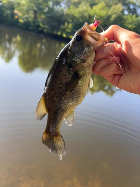 Little bass hit a spinning lure with a lizard trailer. Couple of small bullheads. And tiny crappie
