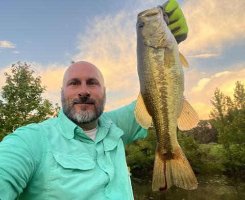 Beautiful fish, beautiful sunset. Caught this 2 lb 7 oz LMB from the shore of a private Tennessee pond. #CatchKing