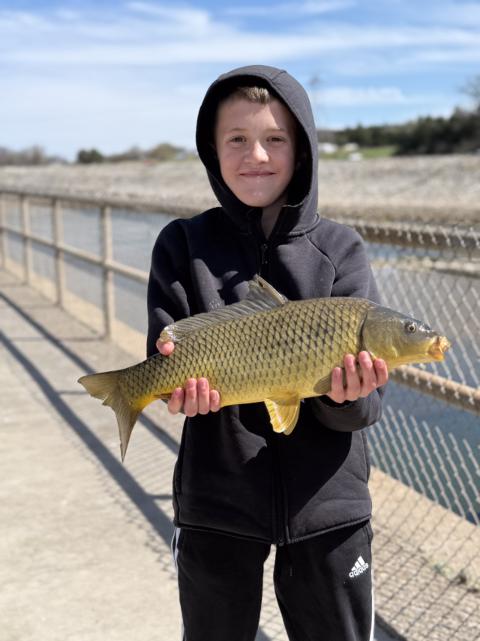 I caught this small carp of the texoma dam and with the help of my brother we pulled ot up together.