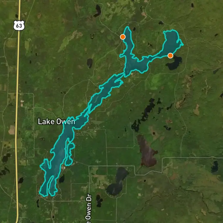 Wife and I trolling 6 inch white/red Super Shad Rap and 6 inch jointed silver/black/red shad-shaped crank bait at 3 - 3 1/2 mph in 12 - 15 ft. over weed beds. 26, 22 1/4 and 21 1/2 inch pike. All will go in the frying pan. First time on Lake Owen and staying at Lake Owen Resort. Beautiful, scenic lake and good fishery. Check out the lake and resort.