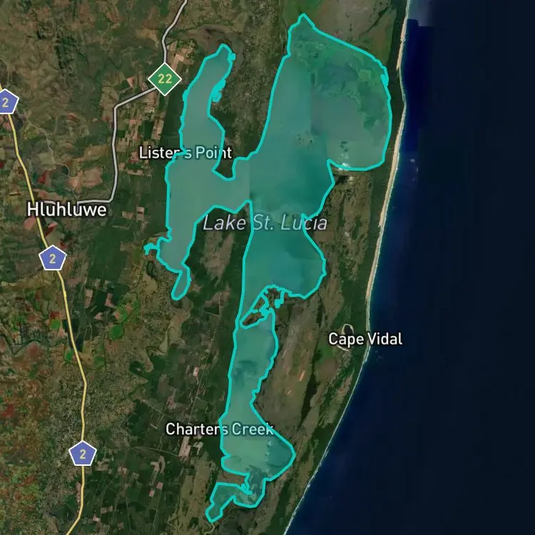 Download FishAngler to find the best places to fish at Lake St. Lucia.